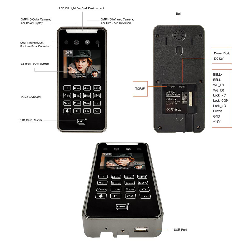 TIMMY AI20, नवीनतम फेशियल रिकग्निशन एक्सेस कंट्रोल सिस्टम, सुरक्षित एक्सेस कंट्रोल के लिए एकदम सही समाधान है। यह CE/FCC/ROHS द्वारा प्रमाणित है और इसकी न्यूनतम ऑर्डर मात्रा 1 है।कीमत पर बातचीत की जा सकती है और यह एक कार्टून में पैक किया जाता है. डिलीवरी का समय 1-2 दिन है और भुगतान की अवधि TT/Paypal/Westubion है। इसमें एक सप्ताह में 500 पीसी की आपूर्ति की क्षमता है। यह चेहरे की पहचान प्रमाणीकरण विधि, पहुंच नियंत्रण,उपयोगकर्ता प्रबंधन, डेटा सुरक्षा और वास्तविक समय की निगरानी. इस चेहरे की पहचान पहुँच नियंत्रण प्रणाली के साथ, आप अधिकृत कर्मियों के लिए त्वरित पहुँच की अनुमति देते हुए उच्चतम स्तर की सुरक्षा के लिए सुनिश्चित कर सकते हैं.